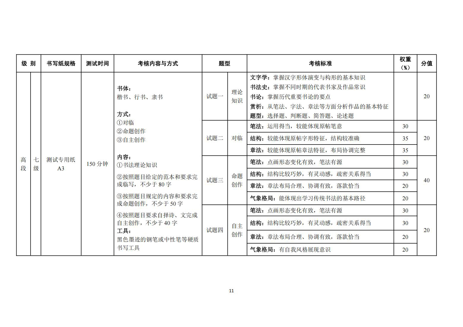 四川省书法水平测试硬笔书法测试大纲(2025年版)