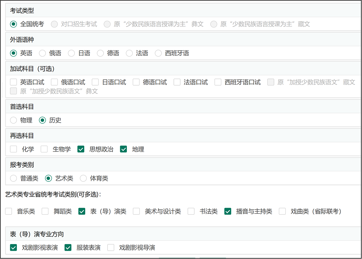 (2)报考对口招生考试的考生,需选择对口招生考试专业类别,选择“文化艺术类”的考生还需选择“艺术专业省统考考试类别”。