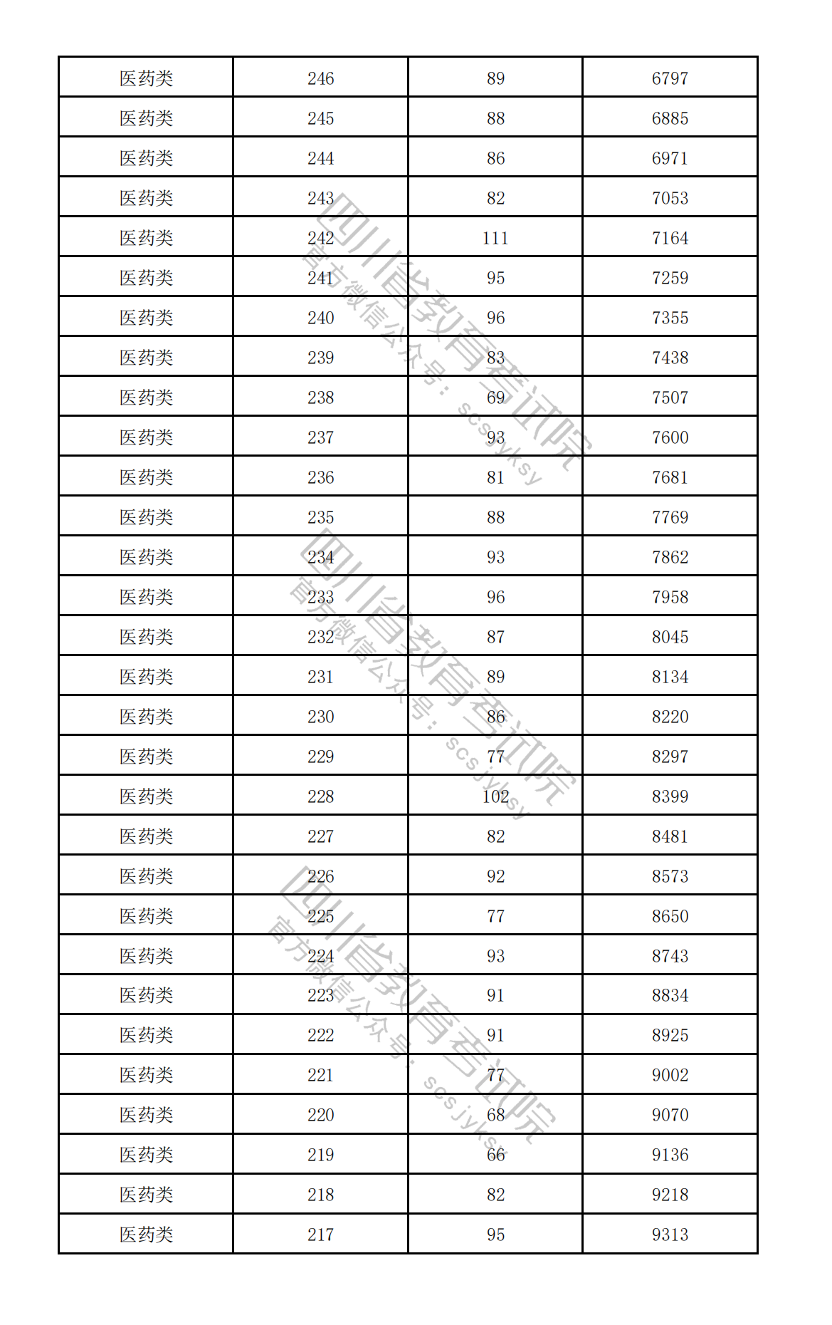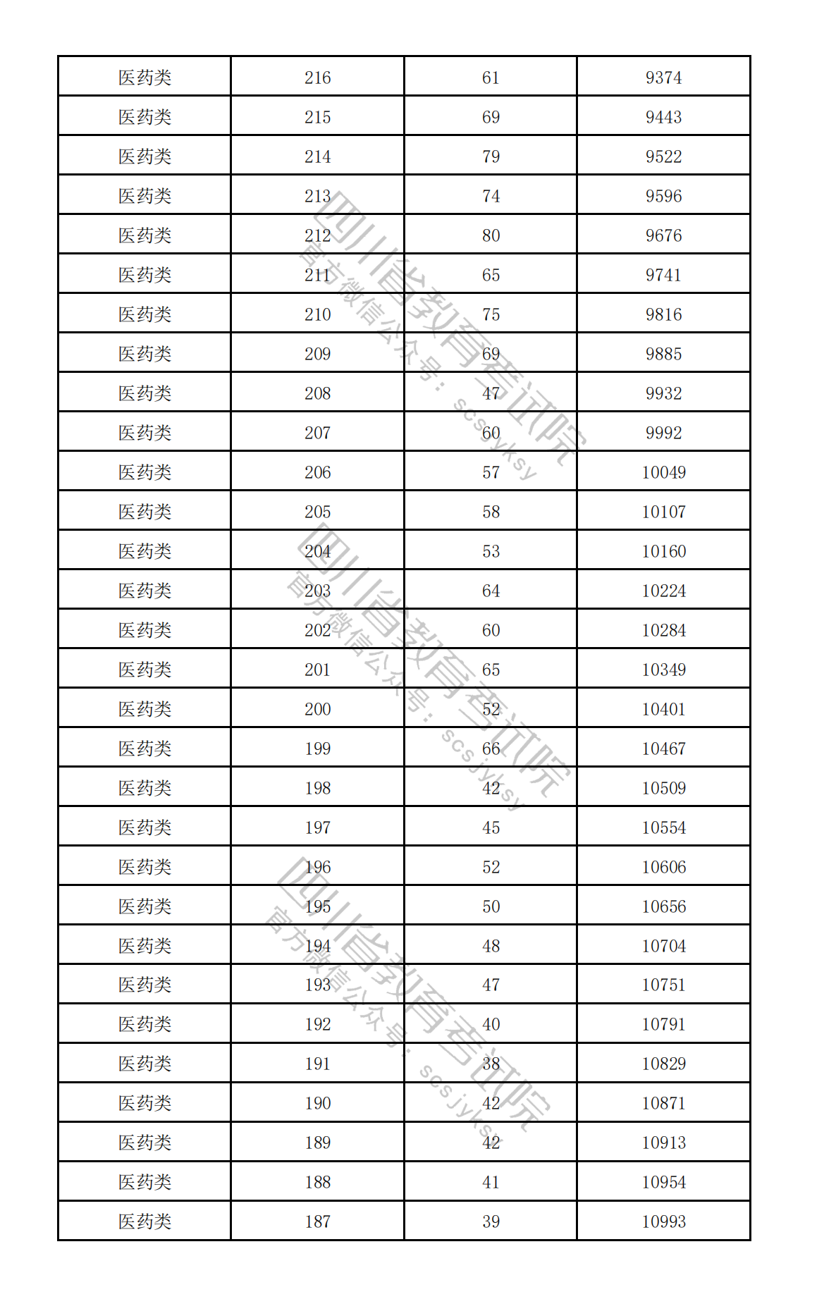 2026年高职单招中职类(医药类)分段统计表